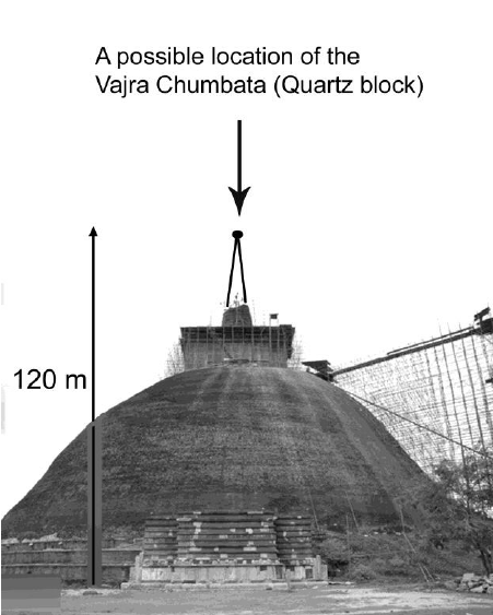 Враховуючи період часу коли ступа була побудована, використані технології виглядають дивовижними. Проміжки між цеглинами заповнювались сумішшю грунту, подрібненого доломіту, вапняку, просіяного піску та глини. Ідеальна форма еліпсу зробила можливою будівництво споруди таких великих розмірів. При будівництві фундаменту щілини заповнювались камінням, яке утрамбовувалось слонами, ноги яких були захищені спеціальними шкіряними ременями.