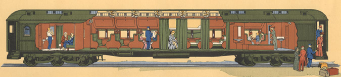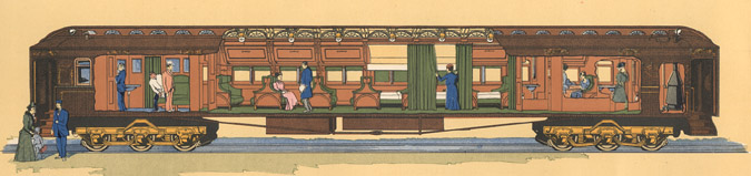 Пулманівські вагони – це перші вагони купе, за зразком яких влаштовані вагони до сьогодні, вироблялись в Чікаґо. Історія цих вагонів настільки багата, що вартує окремої статті. За допомогою наступних двох ілюстрацій ми можемо уявити як виглядали спальні вагони потягу. На першій ілюстрації модель 1891 року, частина вагону вище підлоги виготовлена переважно з дерева. На другій ілюстрацій модель 1907 року – повністю металева.