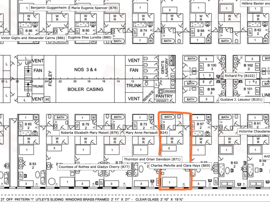 Гейз подорожував з дружиною в каюті Б69 палуби Б, в сусідніх каютах їх супровуджували дочка та пасинок Гейза, а також покоївка та секретар Гейза (чоловік). Всього троє чоловіків та троє жінок.